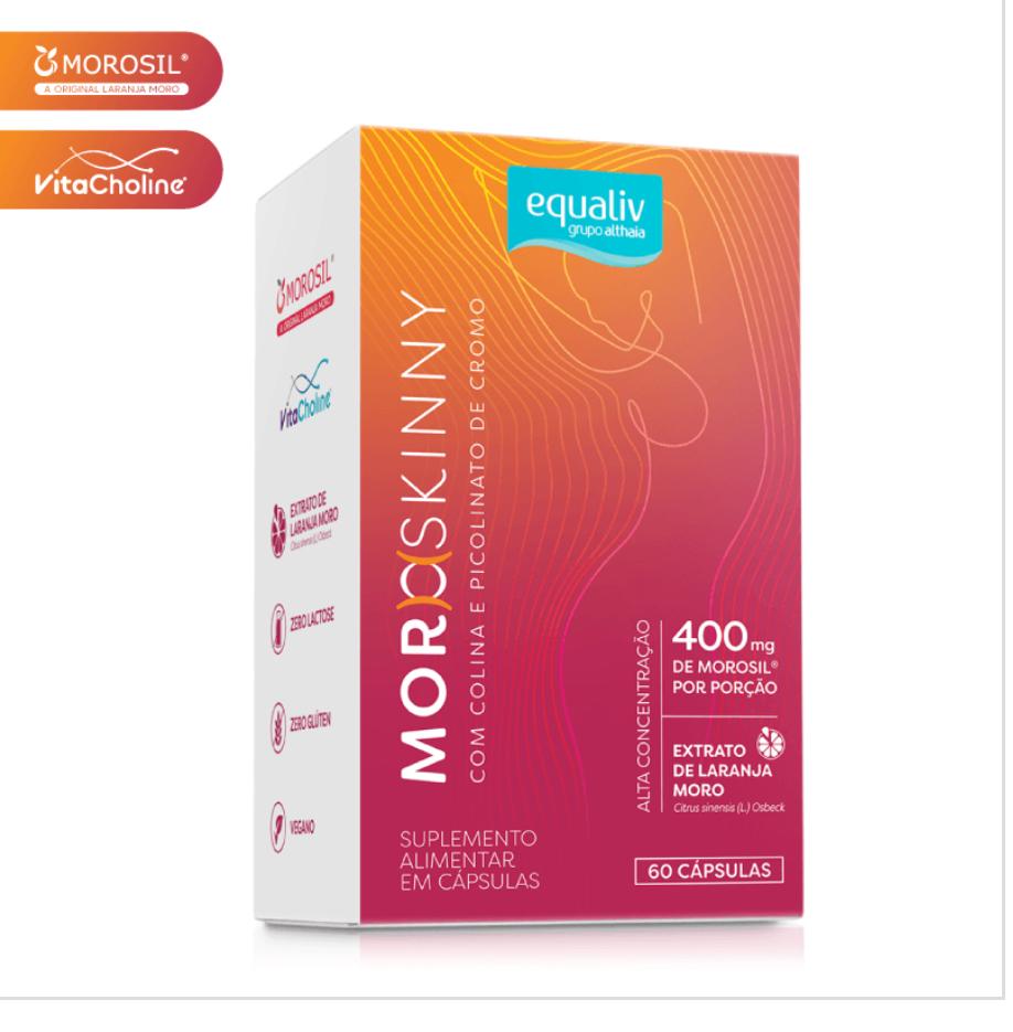 Equaliv Moro Skinny é um suplemento alimentar a base de Morosil®- extrato de laranja moro, uma fruta marcada por sua cor vermelha intensa, devido seu alto teor de antocianinas. Associado a VitaCholine®, uma colina de alta biodisponibilidade e Picolinato de Cromo, que contribui para o controle dos níveis de glicose no sangue, metabolismo de proteínas, carboidratos e gorduras.